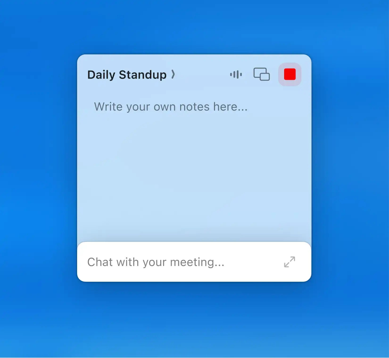 For virtual calls, Radiant detects active meetings automatically. For in-person discussions, simply click “New capture” in the app to start recording. Radiant captures the conversation in real time, just like a virtual meeting.