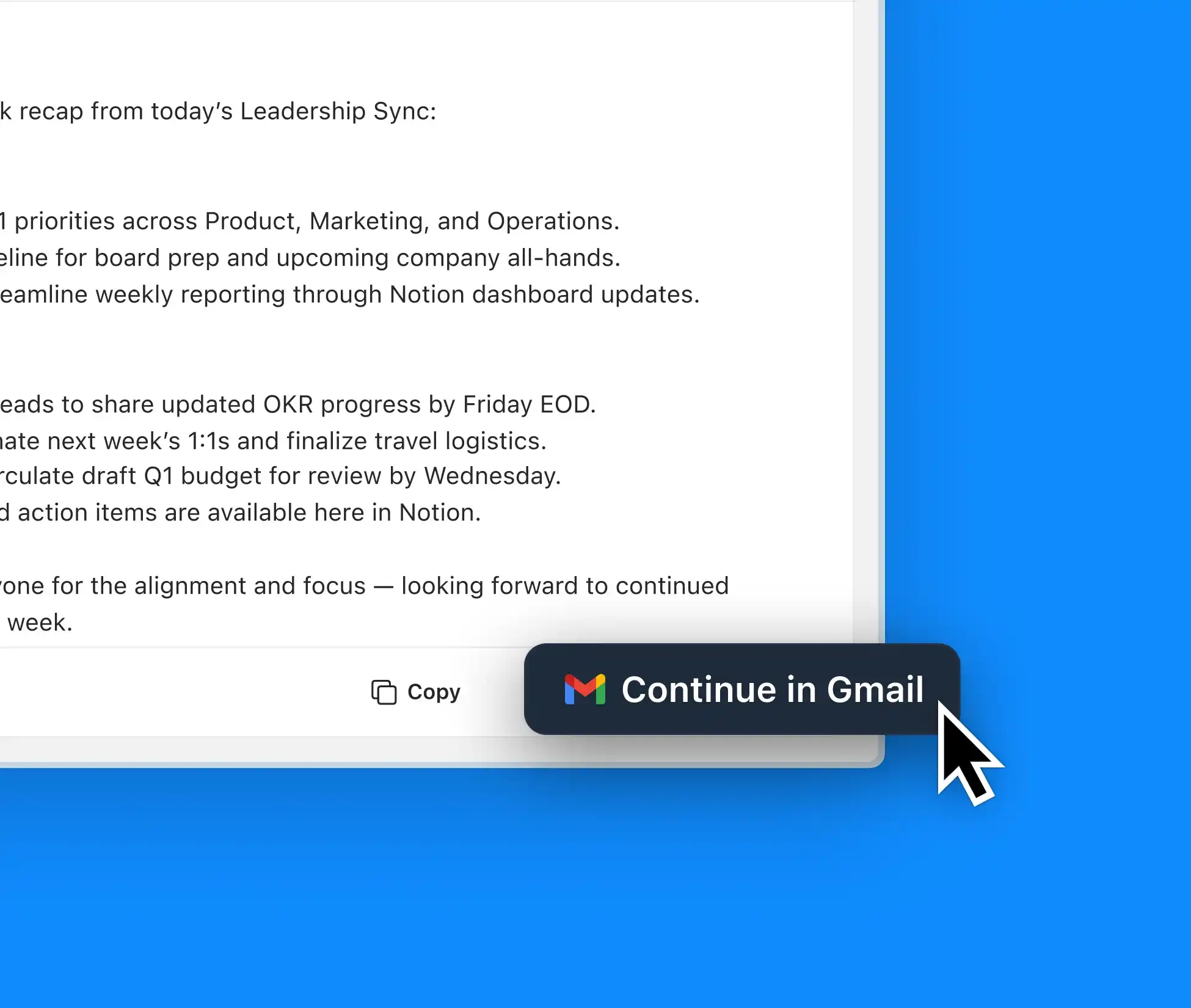 Turn your meeting notes into polished, ready-to-send messages inside Gmail. Download the Mac app and spend less time composing replies.