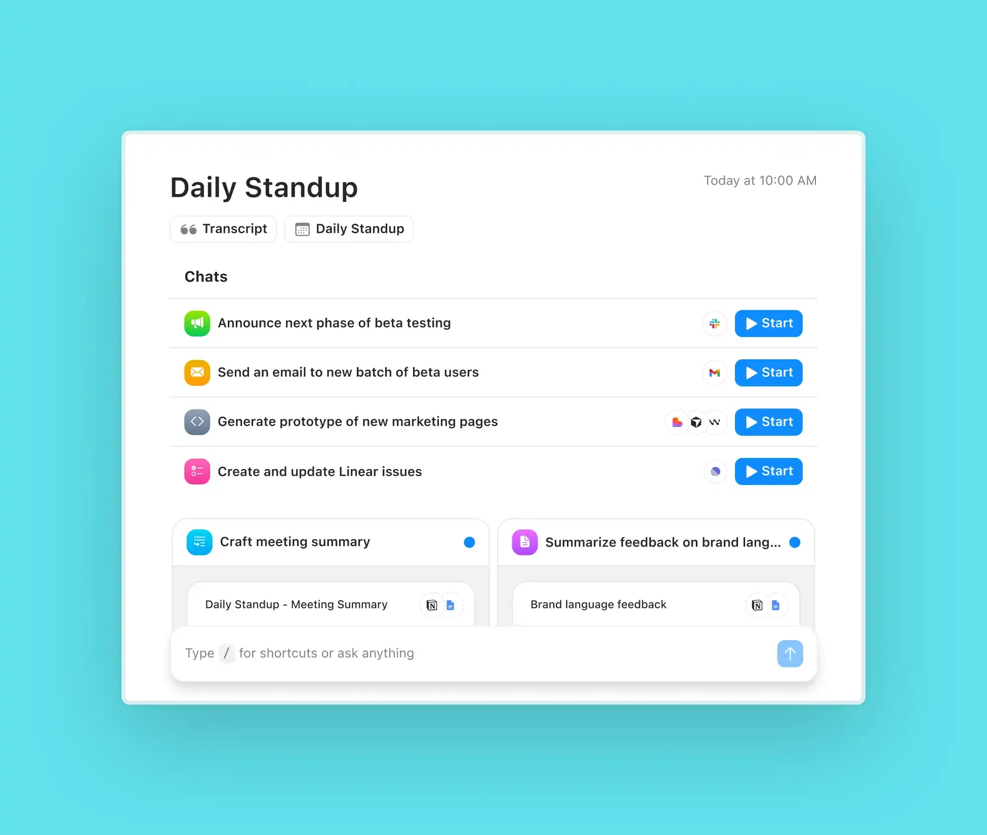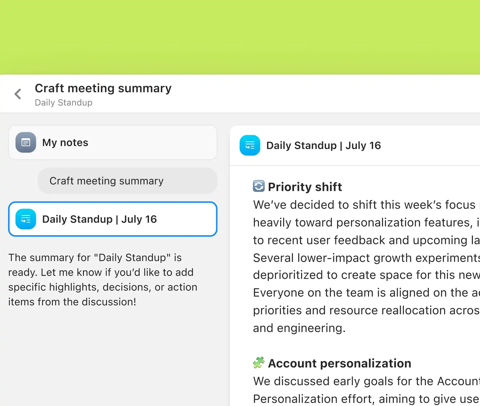 Let your meeting context turn into summaries, tasks, and updates that actually move projects forward. Download the Mac app and keep work flowing.