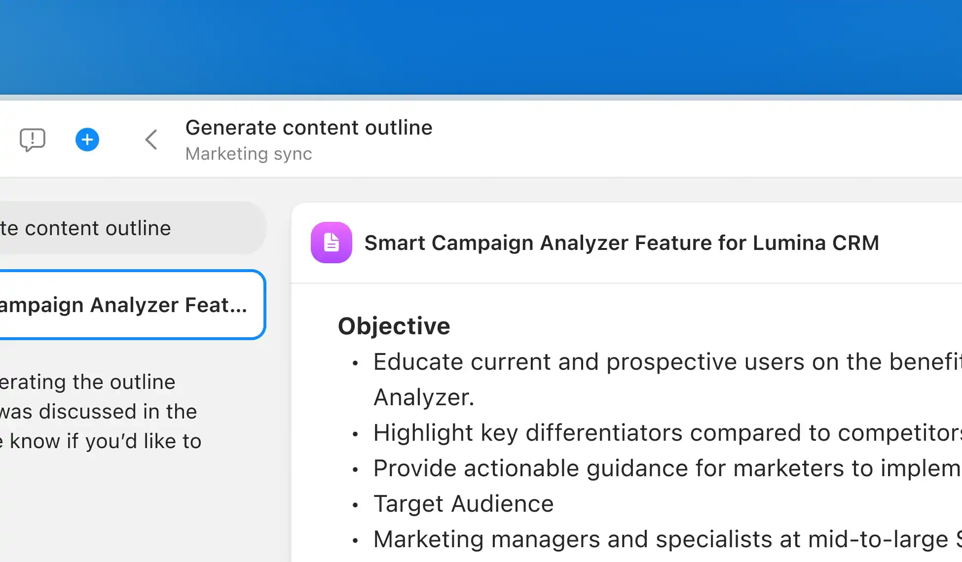 Auto-generate content outlines and writing prompts directly from meeting discussions