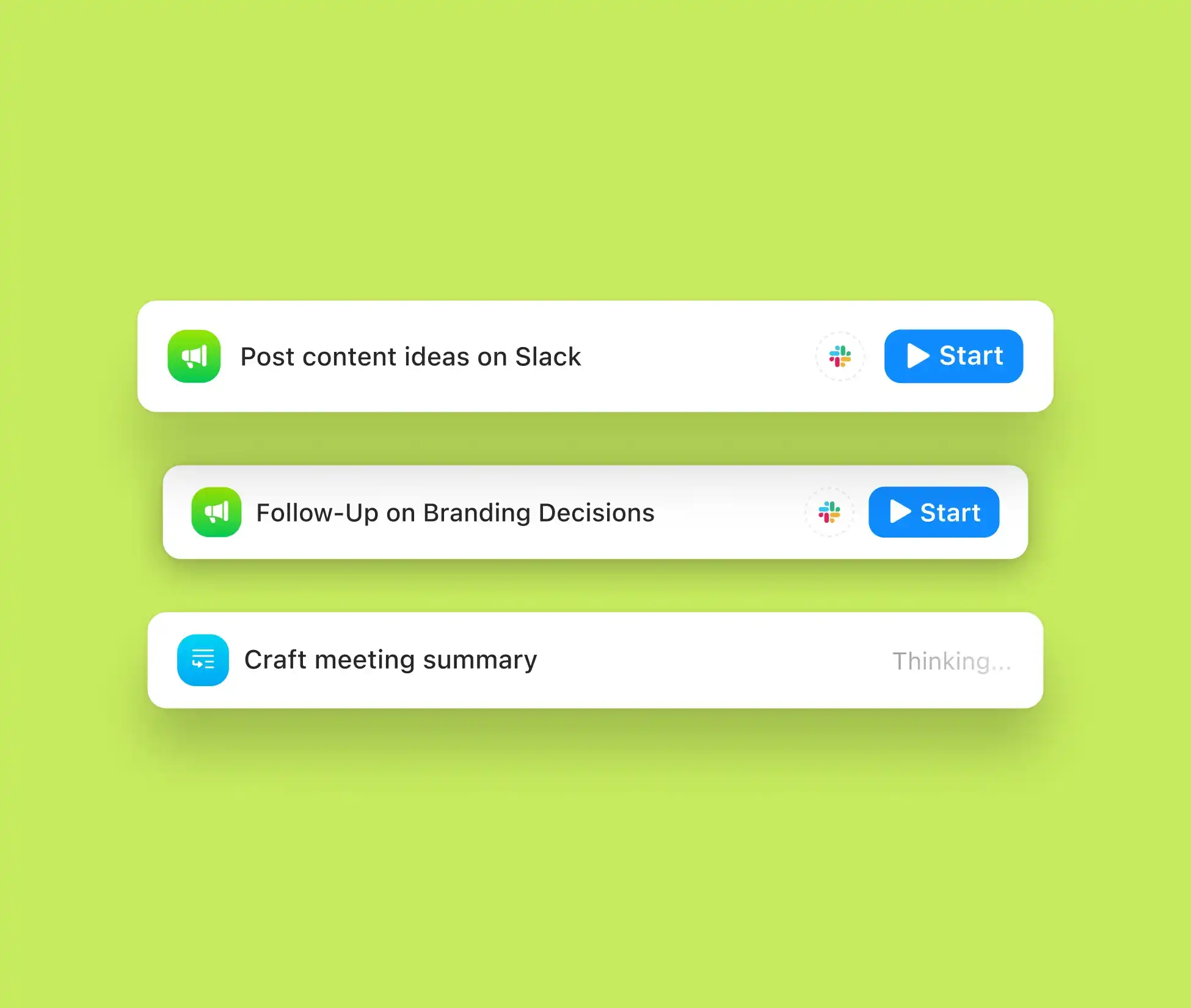Radiant’s Slack integration automates time-consuming post-meeting tasks, from drafting messages to tracking projects and writing prompts for AI tools.