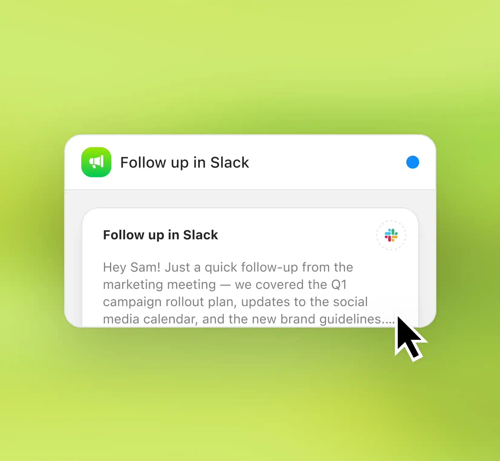 Turn brainstorms, reviews, and syncs into polished copy, clear tasks, and fast next steps. Download the Mac app and keep every campaign moving with momentum.