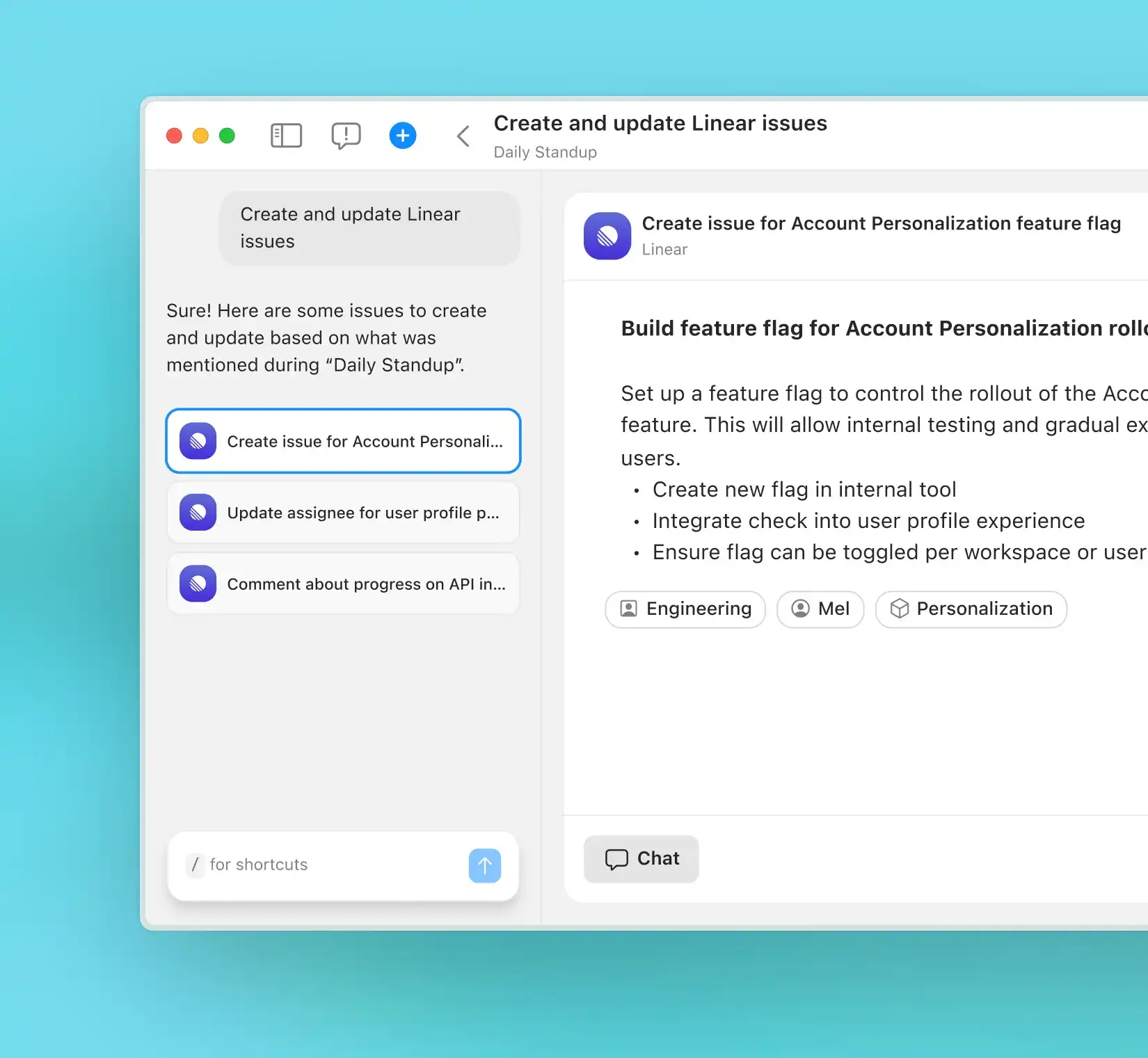 Turn alignment calls, roadmap debates, and spec reviews into clean tickets and action items. Download the Mac app and keep your team unblocked.